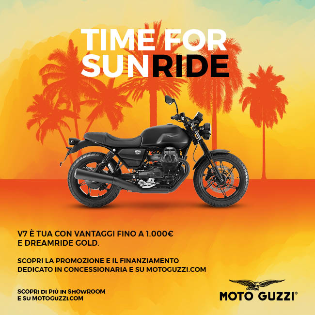 Moto Guzzi V7 850 a luglio tua con vantaggi di 750€ da utilizzare come vuoi. Promo valida per veicoli immatricolati entro il 31/07/2024